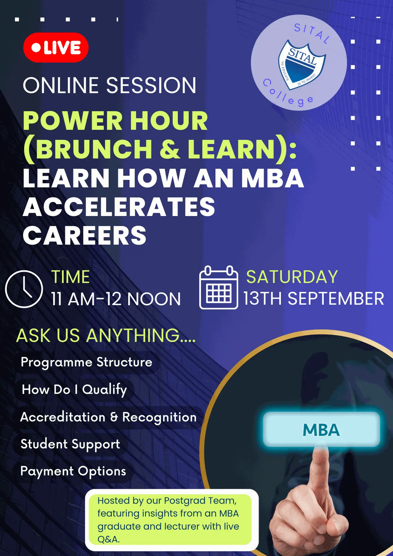 📢 Join us for Power Hour (Brunch & Learn): Learn How an MBA Accelerates Careers – a live online session hosted by SITAL College!